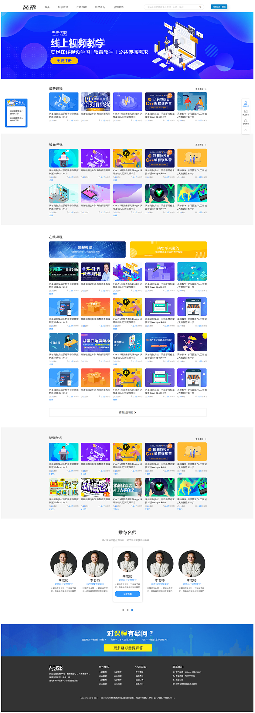 Project Description 满足在线视频学习,教育教学,公共传播需求, 建设学员管理,视频上传, 账号权限分级等商户后台管理功能 Official website address 莱芜http://tiantianyouzhi.com/ I want to share